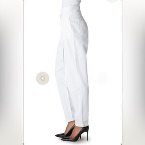 The details: High waisted white jeans with a tapered leg and front pleats. The perfect elevated white jeans for spring/summer.