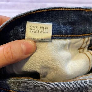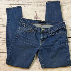 Size 28. Mid rise dark wash skinny jeans. In excellent