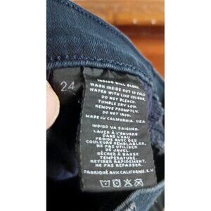 The J Brand Dee Skinny Jean in size 24 for women is a stylish and versatile choice for any wardrobe. Made from a comfortable cotton blend denim fabric with a dark wash, these jeans feature a solid blue color and a low rise fit for a modern and flattering look. The pants have a zipper and button closure, a 30-inch inseam, and are machine washable for easy care. The J Brand brand is known for its quality and design, making these jeans a reliable and fashionable option for everyday wear.