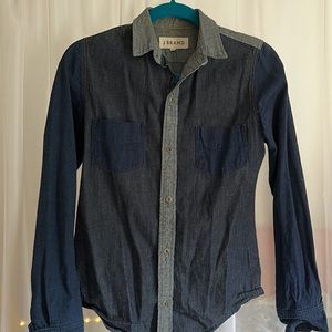 J Brand multi-tone denim button-down shirt. Womens size small, but fits closer to XS. Previously worn, in pristine condition.