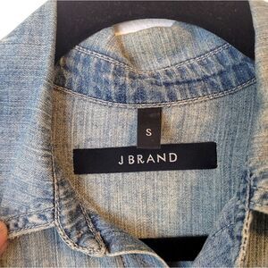 Size small. Has a tear towards the bottom hem and a very faint yellow spot on the pocket. Both are pictured and actually add to the distressed look of the shirt. In otherwise great condition. Denim is in Nimbus Wash.