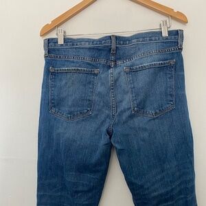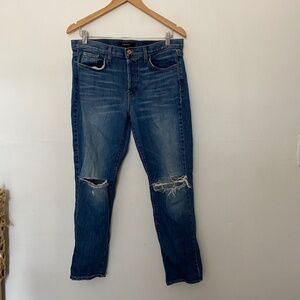 Straight leg boyjean. Distressed. Size 30. In good condition.