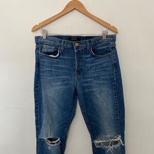 J Brand Distressed Georgia Mid Rise Slim Distressed Boyfriend Jeans in Keeper