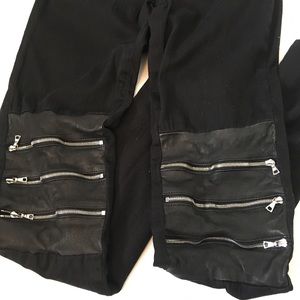 J Brand Hewson Jeans. These are skinny jeans and very stretchy which makes them super comfortable. Stylish trio of zippers on each leg which you can either close or open. Front and back pockets. Amazing quality and excellent condition. These are size 25 but please refer to approximate measures below