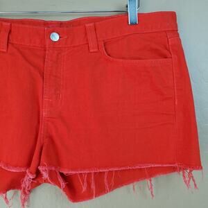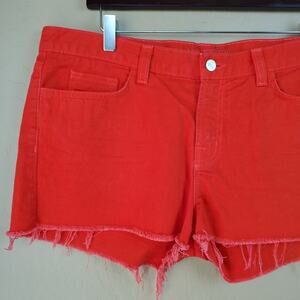 J Brand High Rise Cutoff Raw Hem Red Denim Shorts