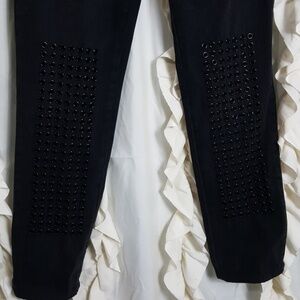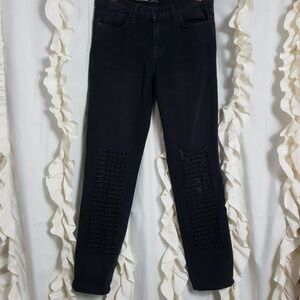 J Brand Ingrid Arcadia Black grommet leg jeans. Midrise slim fit faded black jeans with grommet details from knees down the legs. 5 pocket denim. Great condition no stains or holes.