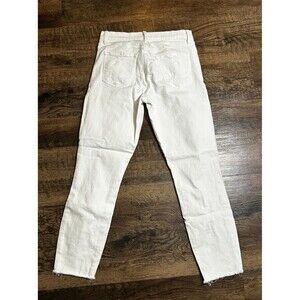 J Brand Jeans Womens 27 White Denim Capri Mid Rise Straight Stretch Frayed Hem