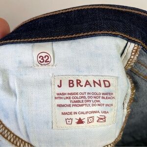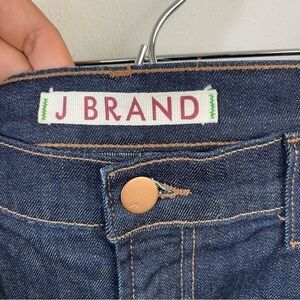 These jeans from JBRAND feature a lightweight stretch denim in a versatile dark rinse. Mid rise, 5 pocket styling, with skinny leg. 2 front pockets with coin pocket and 2 back pockets. Button closure & zip fly. J Brand made in USA.
