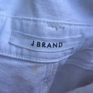 J Brand Jules Skinny Fit Raw Hem Button Fly Denim Overalls White Sz XS