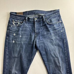 J Brand Kane Jeans Mens 34x32 Blue Denim Slim Straight Leg Indigo Wash Distress