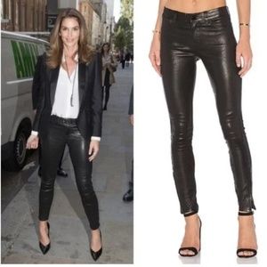 J Brand L8001 Lamb Leather Ankle Zip Black Mid‑Rise Skinny Pants Size 24
