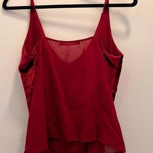 J Brand Lucy Sheer Back Velvet Tank Cami In a maroon red women small silk mix burgundy tank top chest 17” length 21”
