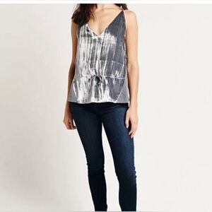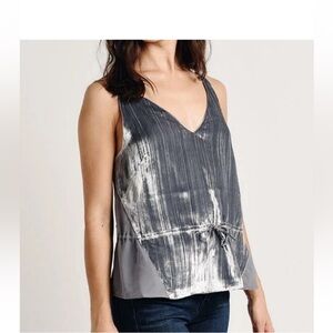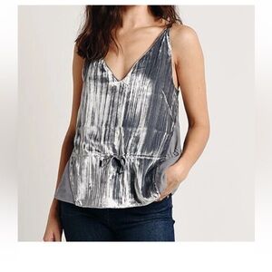 This stunning sleeveless tank top by J Brand features a shimmering silver and white color palette, enhanced by elegant sequins. The tie front detail adds a touch of sophistication, making it perfect for both casual and formal occasions.