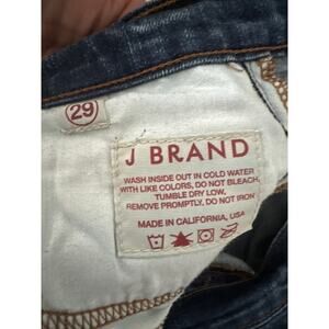 Classic J Brand jeans made in the USA, size 29. Bootcut leg, lowrise with a 9.5” leg opening, inseam 32”, rise 8.5”, and waist 34”. Dark wash denim with timeless appeal, perfect for Y2K revival, heritage style, or casual weekend looks. Great with boots, loafers, or layered with blazers and knits. Made in USA pairs are increasingly rare and sought after, especially in bootcut silhouettes that channel late 90s/early 2000s fashion. Ideal for fall through spring wear, from city to countryside, festivals to casual everyday outfits. Laundering recommended upon receipt.