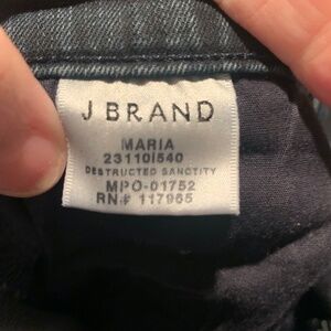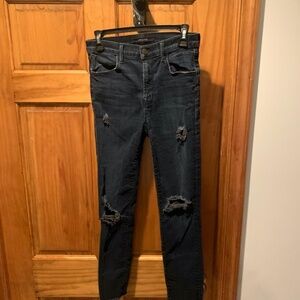 J Brand Maria distressed skinny jeans in indigo. Raw hem. Zip and button closure. Women's size 27. Gently used with no flaws.