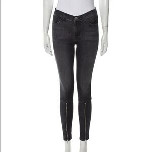J Brand Mid Rise Super Skinny Black Heath Front Zip Jeans Size 25