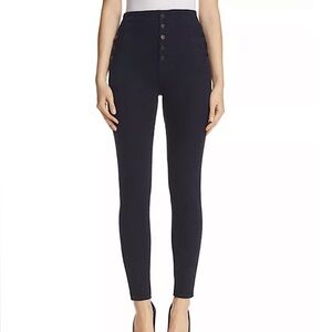 J Brand Natasha Sky High Skinny Button Fly Jean Bluebird Deep Indigo 23. Style# JB000918. J Brand goes heavy on the hardware with this pair of inky-dark skinnies, remixing the otherwise classic style with rows of buttons and waist-defining rise. Statement-making buttons at the fly and hips to cinch you in. Super-skinny fit through entire leg in a heritage deep indigo wash that has been reborn from the archives. High rise. Exposed button fly, front button-slit pockets, back patch pockets. Tonal stitching, black logo hardware, skinny-leg silhouette, cropped. Approx measurements: 10.75“ rise, 30“ inseam, & 11.25“ waist. Great pre-owned condition. No stains/flaws. Smoke/pet free home. Offers welcome. Bundle & save. Ship same/next day. Packaged w/ care.