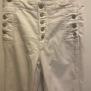 Fabric is stretch denim 90% cotton, 8% polyester, 2% spandex, in Blanc color