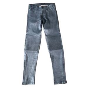 J Brand Nicola Lamb Leather Moto Skinny Ankle Zip Low Rise Pants Pewter size 26