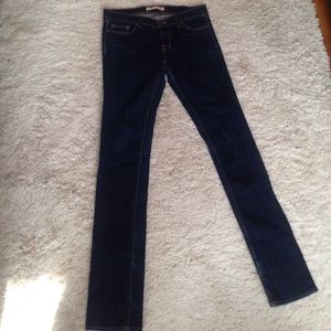Jbrand Pencil Leg Dark Wash Jeans in Style 912 Ink. Slight fading around upper inner thigh (not sure if it came like that). Inseam: 33.5" inches