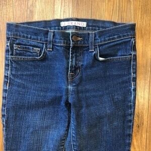 J Brand Jeans Pencil Leg in Ink rinse (dark blue) size 25 in excellent preowned condition. Have slight fading at knee. From smoke home. J Brand jeans have always been about making a woman look great, not just drawing attention to the jeans. Their latest denim line is no exception, avoiding rips, fades and other designs that can detract from your outfit as a whole. These stretch-denim jeans fit like a glove and flatter every curve–so you're the star, not your jeans.
