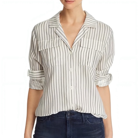 J Brand Peyton Utility Satin Viscose Stripe Shirt Size S