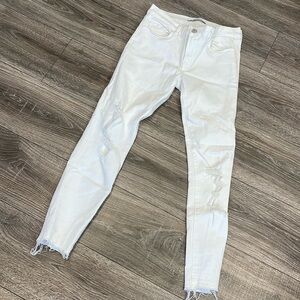 J Brand Raw Hem Distressed Knees Cropped White Skinny Jeans size 27