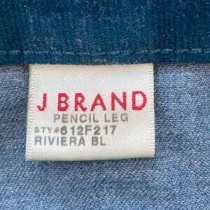 J Brand Riviera Deep Turquoise Blue Pencil Leg Velvet Courdoroy Texture Pants 26