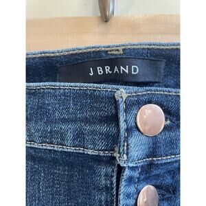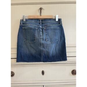 J Brand Rosalie Mini Denim Skirt Raw Hem Rose Gold Button Fly Dark Wash Size 28