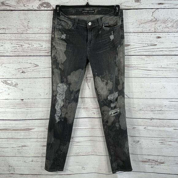 J Brand SZ 28 Jeans Skinny Distressed Mid-Rise 5-Pocket Gray Acid-Wash Stretch