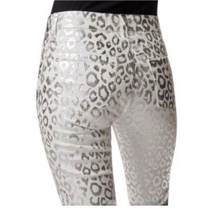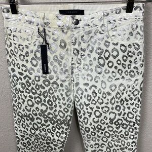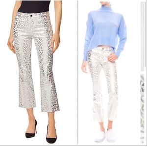 J Brand Selena Snow Leopard Pants Crop Bootcut Ribbed Metallic Coated Sz 28