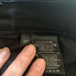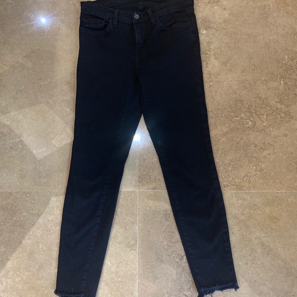 J Brand black skinny leg jean in size 27. Jeans have a frayed bottom and are in great condition.