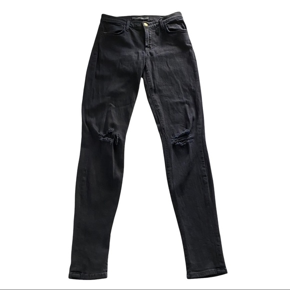 J Brand Super Skinny Blackout Black Denim Mid-Rise Destroyed Jeans Women’s 27x30