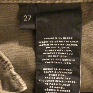 A slim silhouette lends a modern feel to these J Brand utility pants, styled with zip closures at the layered front pockets. Patch back pockets. Button closure and zip fly. Excellent preowned condition. No flaws or defects to note.