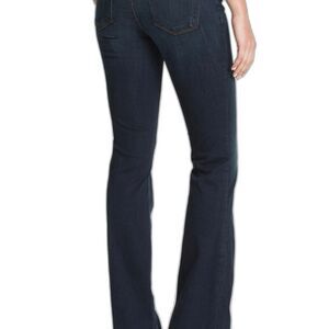 These jeans are the BEST bootcut jeans I have ever worn. They are soft and have a bit of stretch to them. When you bend over, they stay where they are supposed to. :) They are a little long, so great if you are tall or otw easy to hem. Dark, dimensional denim shapes versatile, mid-rise jeans styled with a slim fit through the seat and thighs that ends with flattering bootcut hems. No flaws, lightly worn once. 26=2