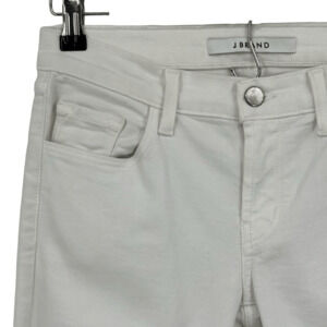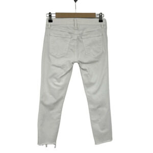 J Brand White Denim Distressed Raw Hem Low-Rise Demented Cropped Jeans Size 25