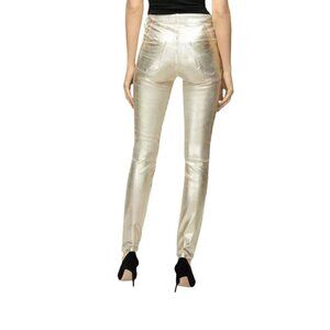 J Brand Women's Maria Metallic Wash High Rise Skinny Leg Jeans in Gold Messaline