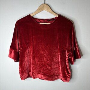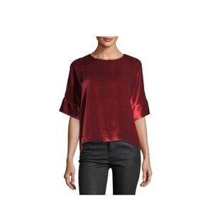 J Brand Women's Velvet Daisy Blouse Top Silk Blend XS Red Oversized Bohemian