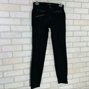 A trio of zippers brings an edgy rock and roll look to these skinny jeans.