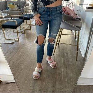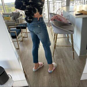 Size 24, great relaxed crop boot condition. Would say they run bigger than a 24 , really relax cut with stretch, could fit a 25-26. Ripped knees detail. Perfect condition.