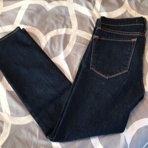 J brand skinny ankle jeans. These jeans have stretch in a dark wash, manufacturer name is “ink”. Should be around an ankle fit (note shorter inseam).