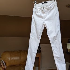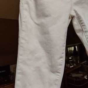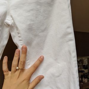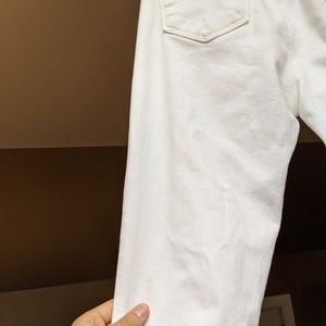 Small stains on legs at multiple locations (shown), not very noticeable unless pointed out. Worn only a few times, white is so hard for me to keep clean.