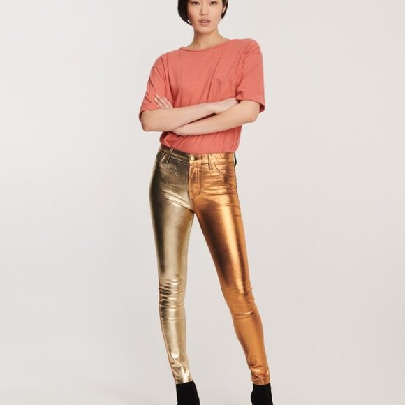 J Brand x Halpern High-Rise Maria Jeans in Gold Dust Multi-Foil