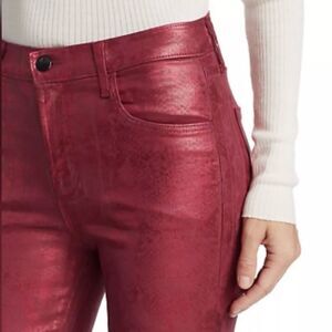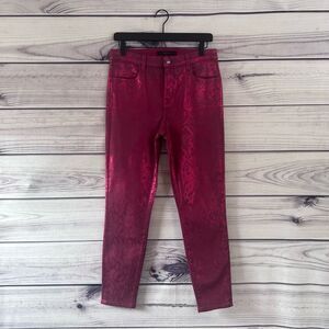 J Brand Red Alana Opium Jagged Python Metallic Coated Skinny Jeans