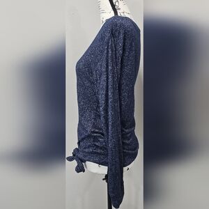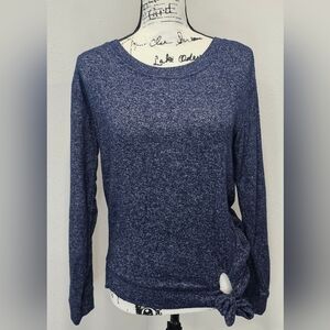 J. By J. Crew Blue Heathered Long Sleeve Round Neck Top Side Knot Size Small