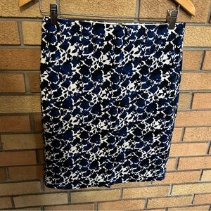 J. By J. Crew Pencil Mini Skirt Size 2 Blue & White Floral Design