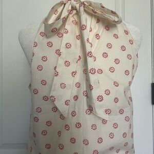 J. By J Crew Women’s Off White with Red Halter Top with Tie Neck Cotton Size 0