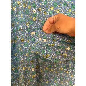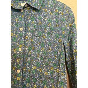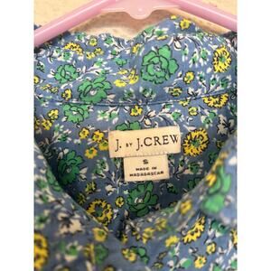 J. By J.Crew Blue Yellow Ditsy Floral Cotton Button Front Blouse Top Size Small