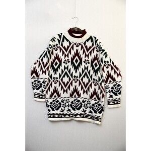 J C & Louis Men's L/XL Mock neck Sweater Southwestern Aztec Design Vintage 80's