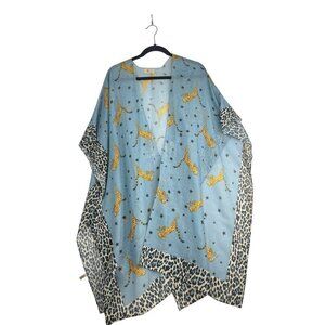 J C Sunny top open side cape sleeves open front Tiger design cotton